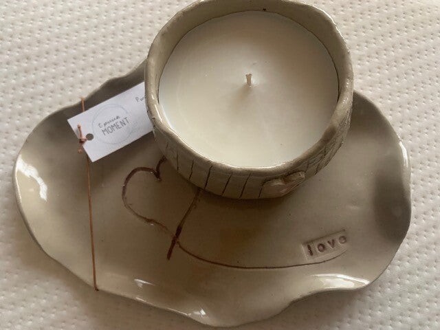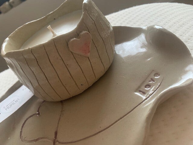 kaars 320ml in unieke keramiek pot met hartje - geur lenteochtend