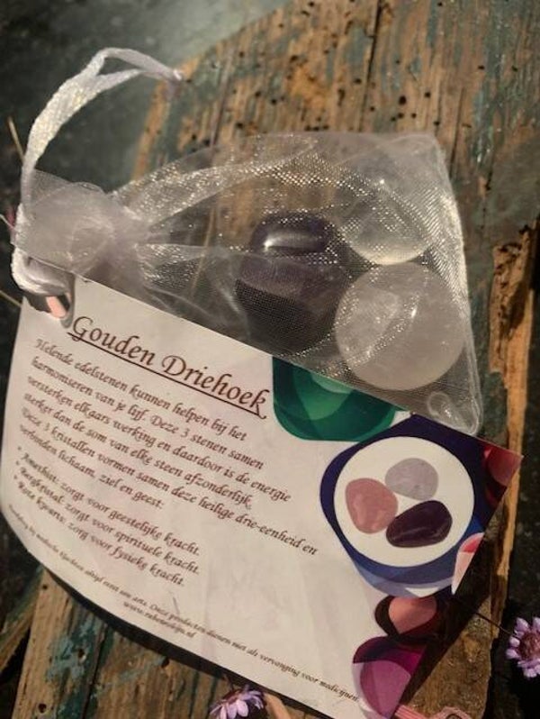 Deze 3 stenen (Roze kwarts, Amethist en bergkristal) samen versterken elkaars werking en daardoor is de somvan de energie sterker dan elke steen afzonderlijk.
