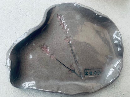 Handgemaakt uniek schaaltje - donkere klei - naturel geglazuurd.